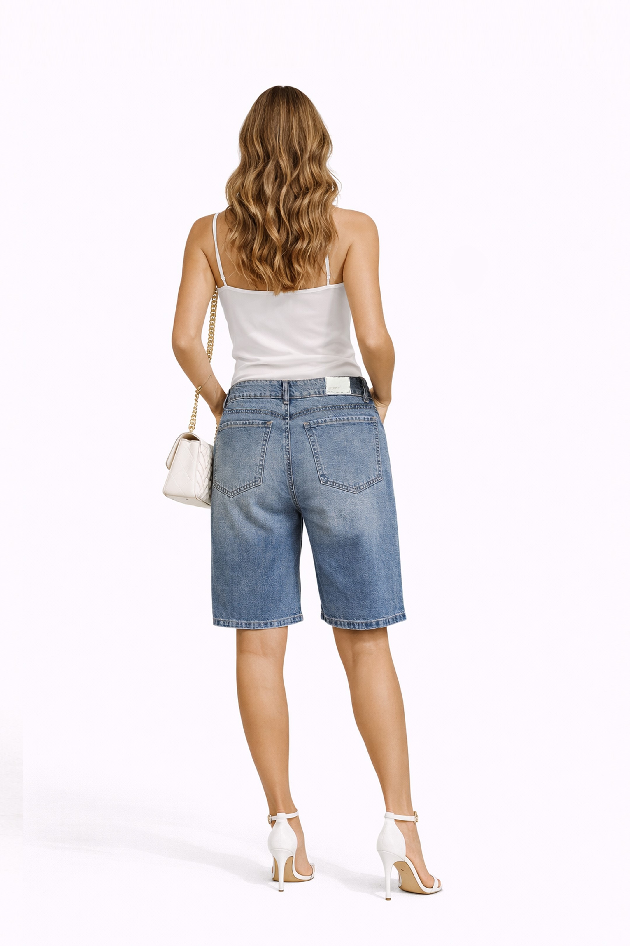 La bermuda Denise redefine el estilo casual con un corte clásico y estructurado. Confeccionada en denim rígido de alta calidad, 100% algodón, ofrece una silueta firme que mantiene su forma durante todo el día, evocando una estética vintage y sofisticada.