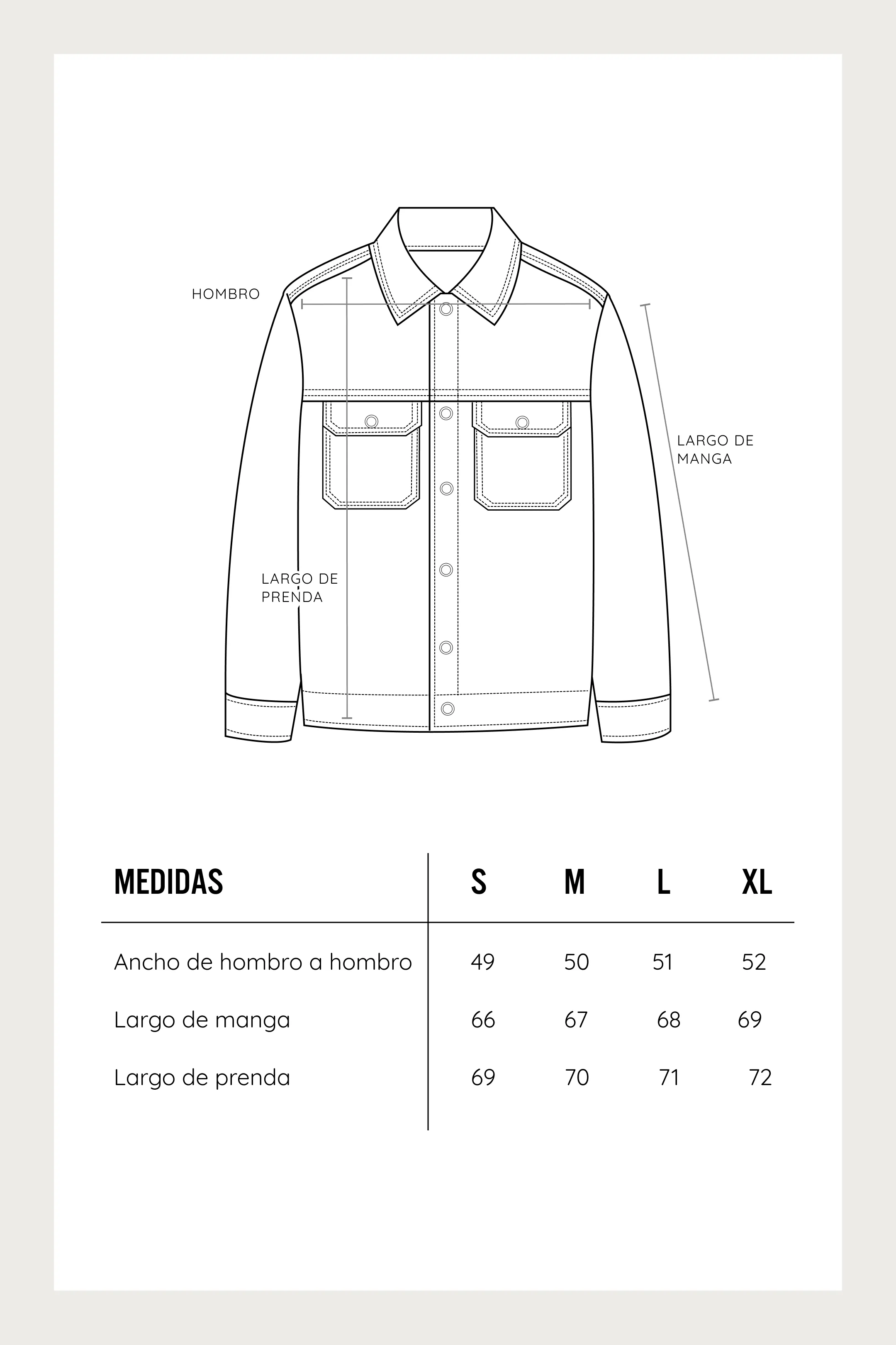Casaca Denim en tela rígida 100% algodón de cuello solapa y manga larga. Bolsillos en delantero. Efecto lavado. Cierre frontal con botones metálicos.